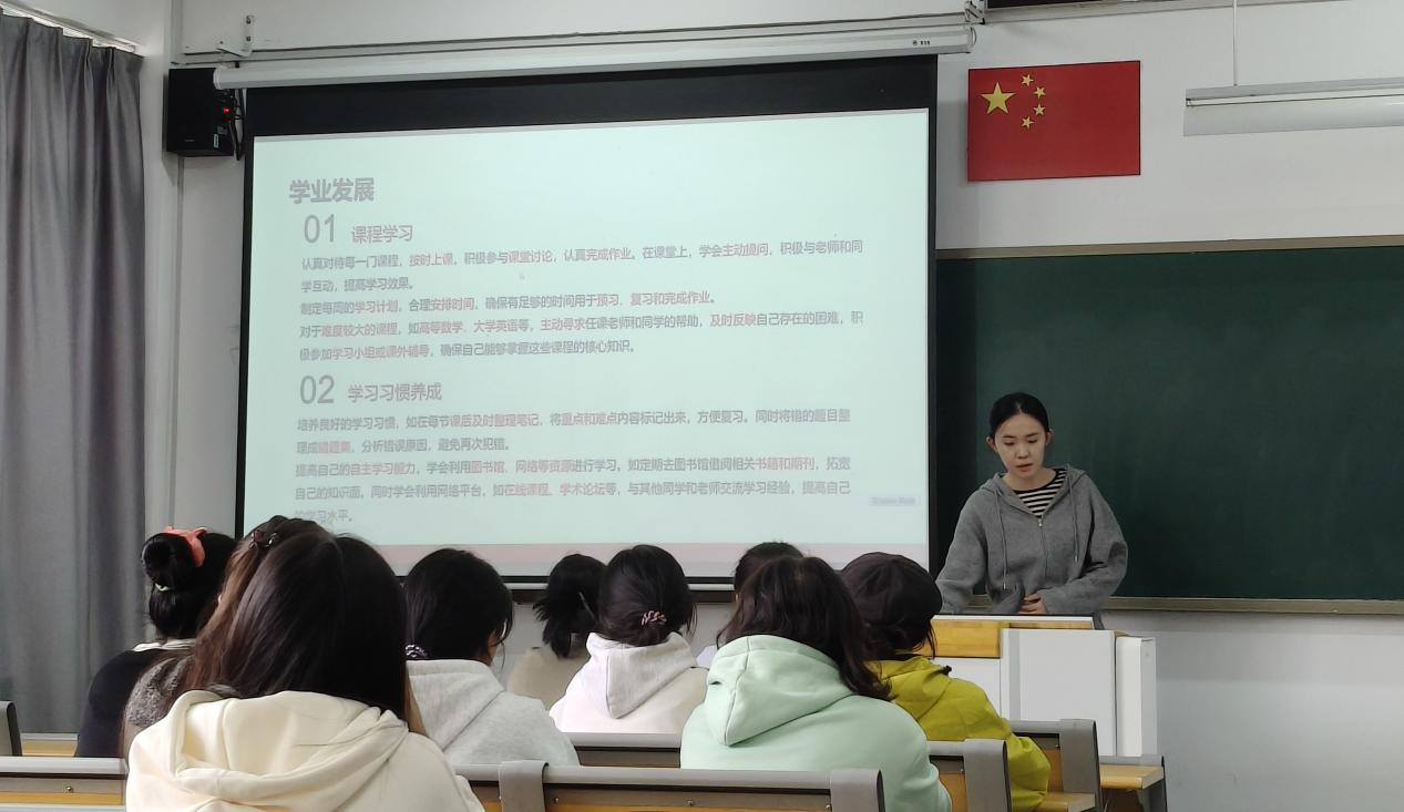 紧接着,郭老师从学业发展与个人成长的角度对同学们提出了具体要求。她鼓励新生们要尽快完成角色转变,树立远大学习目标,科学规划大学生涯,充分利用学校的各类资源,不断提升自身综合素质。