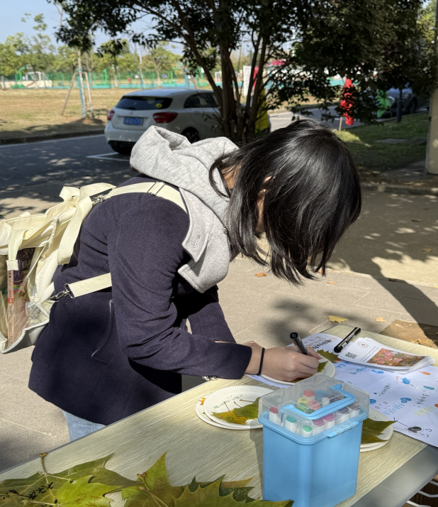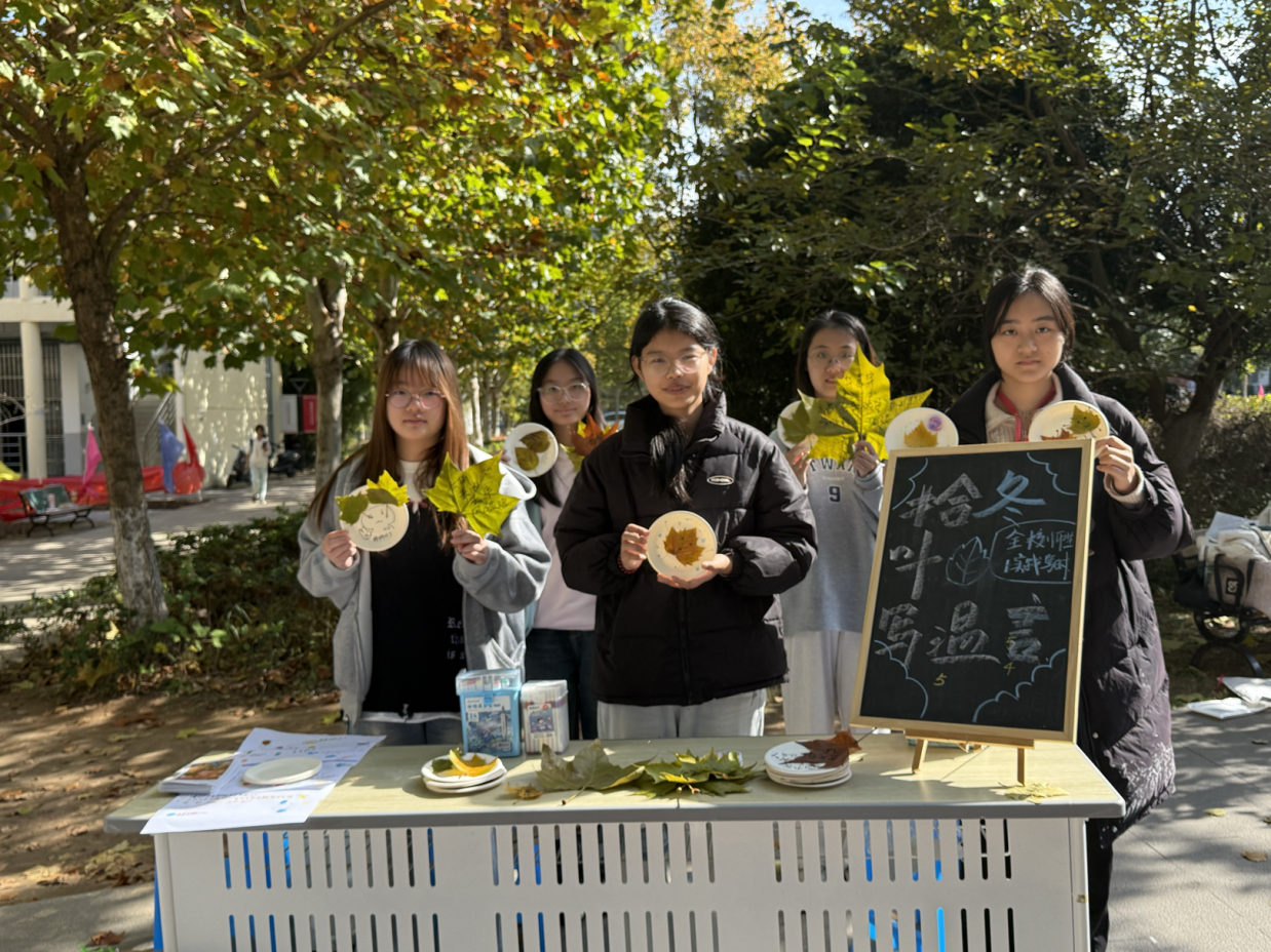 “本来只是路过,看到树叶上的字突然觉得很治愈。”参与活动的2025级张同学笑着展示自己写的“慢慢来,会好的”,“把压力写在叶子上,好像真的轻了一点”。从捡拾落叶到落笔书写,这场“零门槛”的互动,让同学们在忙碌的学业间隙,完成了一次情绪的轻释放,实现了与自我的温柔对话。
