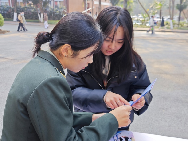 线上线下“双联动” 全链条服务助圆梦 此次同步宣传活动是我校深化国防教育、推进征兵工作走深走实的具体举措。人武部采用“线上+线下”融合、“集中宣讲+个性咨询”结合的模式,确保政策宣传全覆盖、指导服务零距离。人武部将进一步优化“宣传-报名-服务-跟踪”全链条工作机制,开设线上答疑工作群,为有意向的学生提供从咨询到入伍的全程精准指导,助力更多优秀学子携笔从戎,在强国兴军的伟大征程中绽放青春光芒。 (文/图:黄淇淇 邓顺和 编辑:邓顺和 审核:胡博) |
