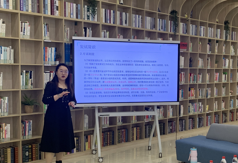(辅导培训现场) 培训中,张唐玉老师围绕三大核心模块展开系统讲解,精准对接学子备考需求:一是普及复试常识,清晰梳理复试流程、考核形式及评分逻辑,帮助学子明确备考方向;二是指导仪容仪表,从着装规范、仪态举止、沟通表达等方面给出具体建议,助力学子塑造良好面试形象;三是拆解调剂实操,详解调剂政策、信息搜集、志愿填报等关键环节,分享高效上岸策略与实操技巧。
