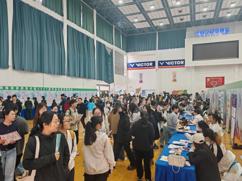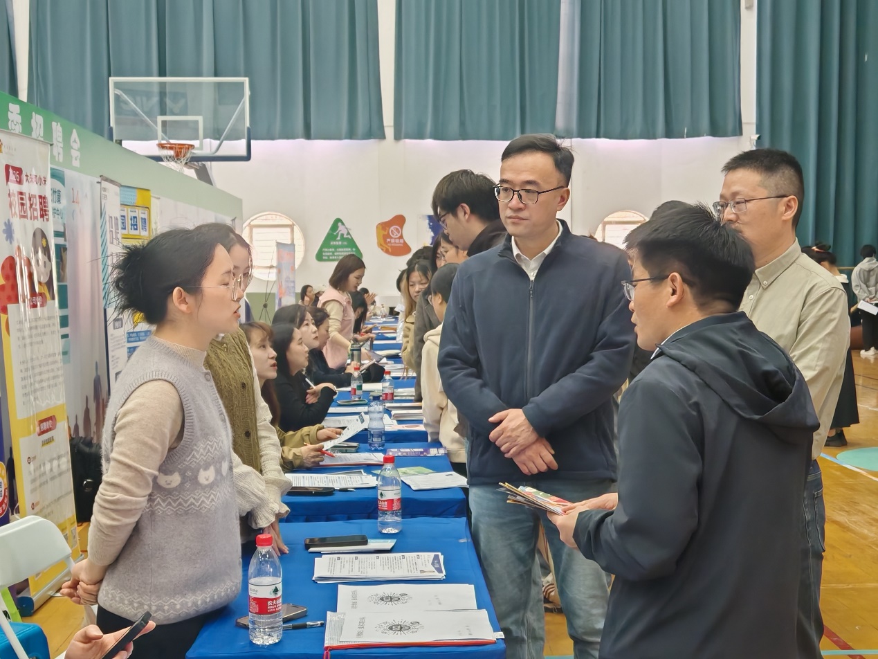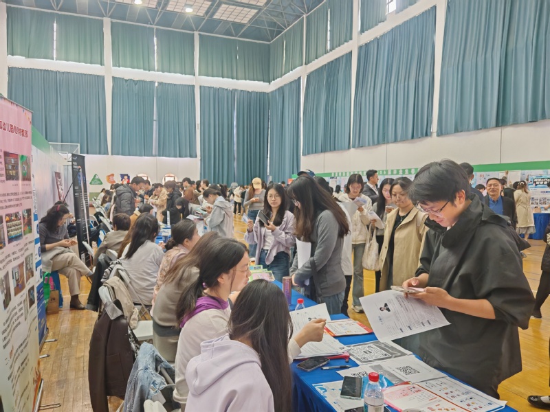 招聘会现场人头攒动,气氛热烈。近千名毕业生积极参会,手持简历穿梭于各专区之间。同学们就岗位职责、薪资待遇和职业发展等问题与用人单位进行了深入交流,不少学生在现场便与企业达成了初步就业意向。